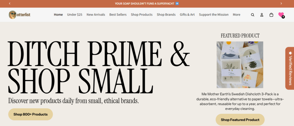 OtterList is an ethical marketplace, showcasing sustainable and eco-friendly products from small businesses.